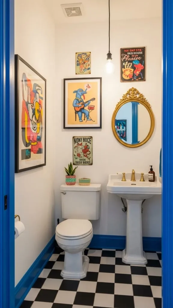 This technique is cost-effective and easy to execute, requiring only a small amount of paint. It pairs well with black and white floor tiles and funky art prints. By framing the room in a bold color, you define the space and add visual interest without darkening the room.
